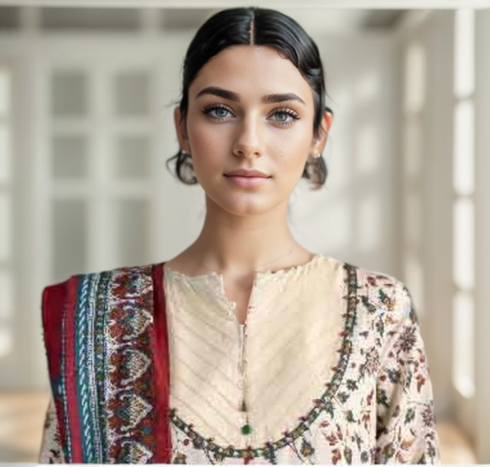"Asian Cotton Fashion’s Ivory Bloom Cambric 2-Piece features a soft cream base adorned with delicate floral patterns and a contrasting maroon dupatta. Crafted from breathable cambric, it combines timeless charm with cozy light-winter comfort—perfect for elegant daywear and seasonal gatherings."