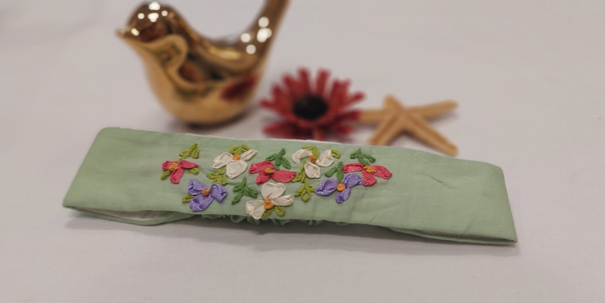 Green Embroided Hair Band